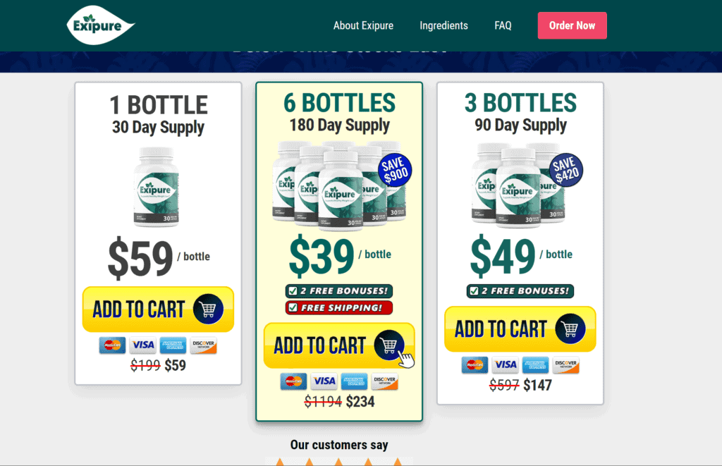 Exipure is available for purchase from the official website. There are 3 options to choose from: